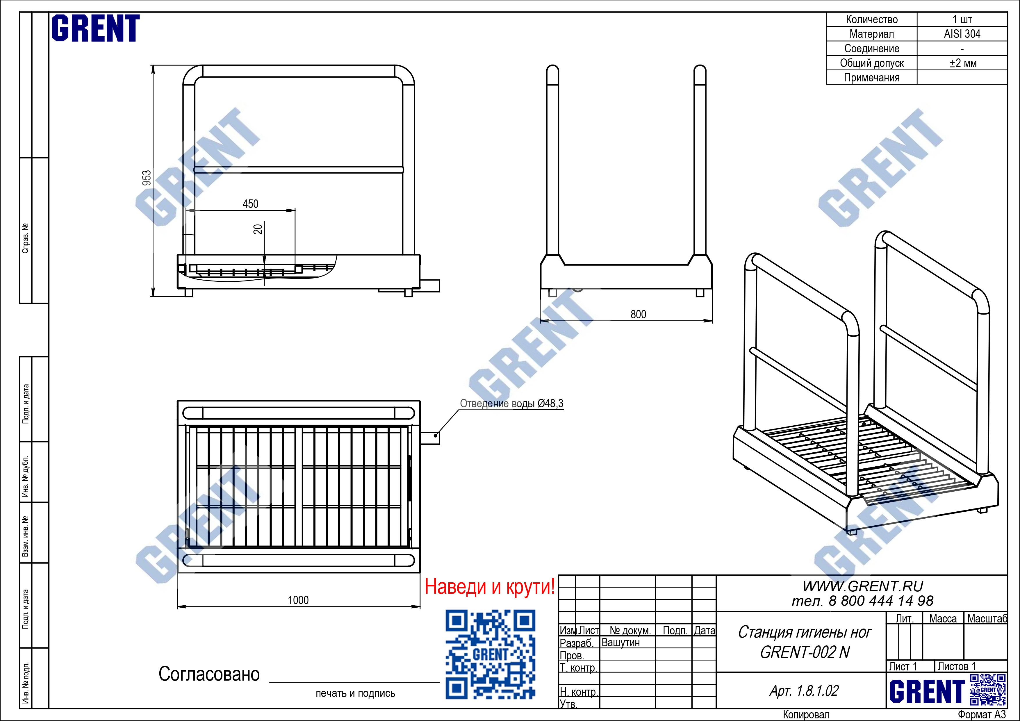 Станция гигиены обуви GRENT-002 N предназначена для дезинфекции подошв обуви персонала перед выходом (входом) из чистой зоны.