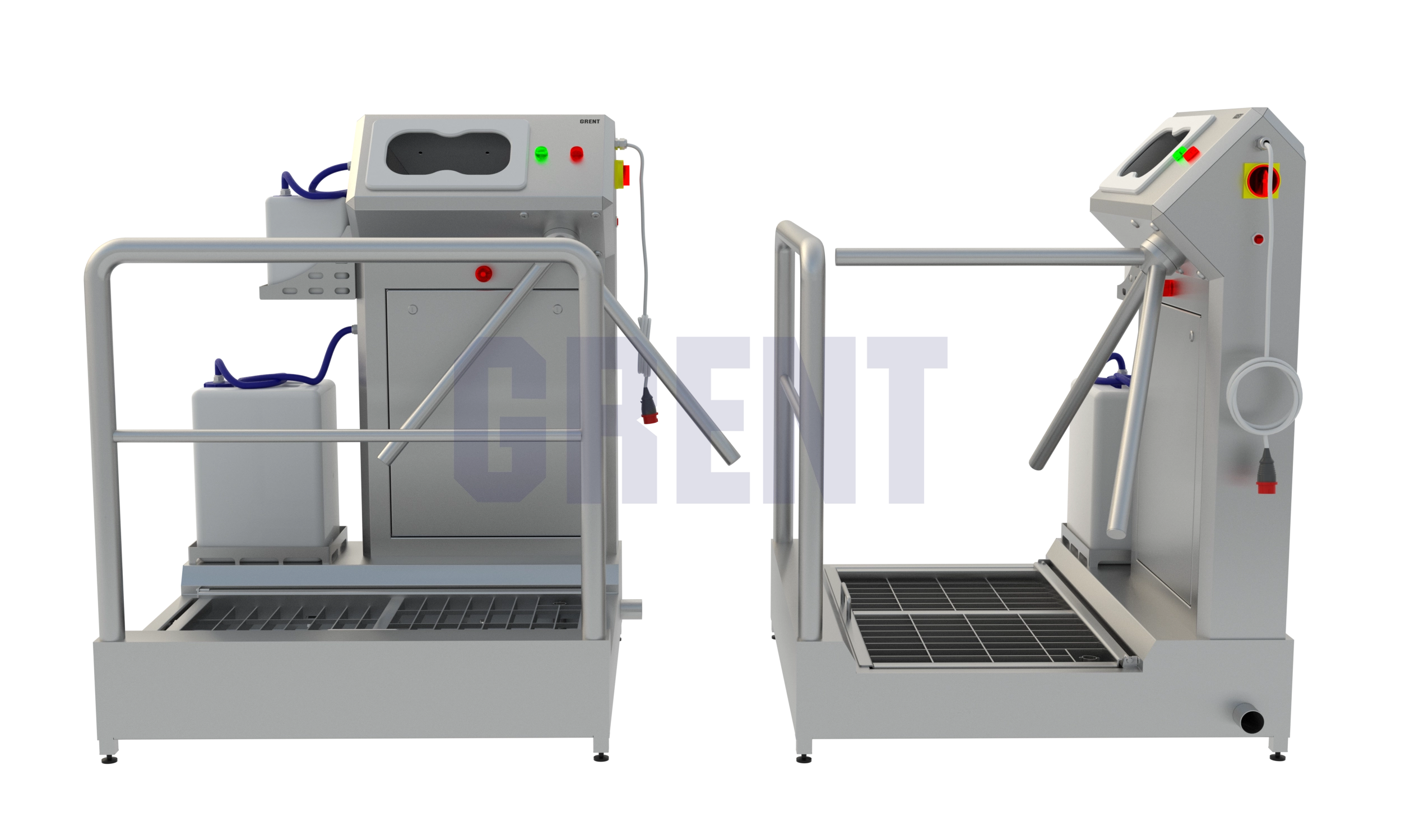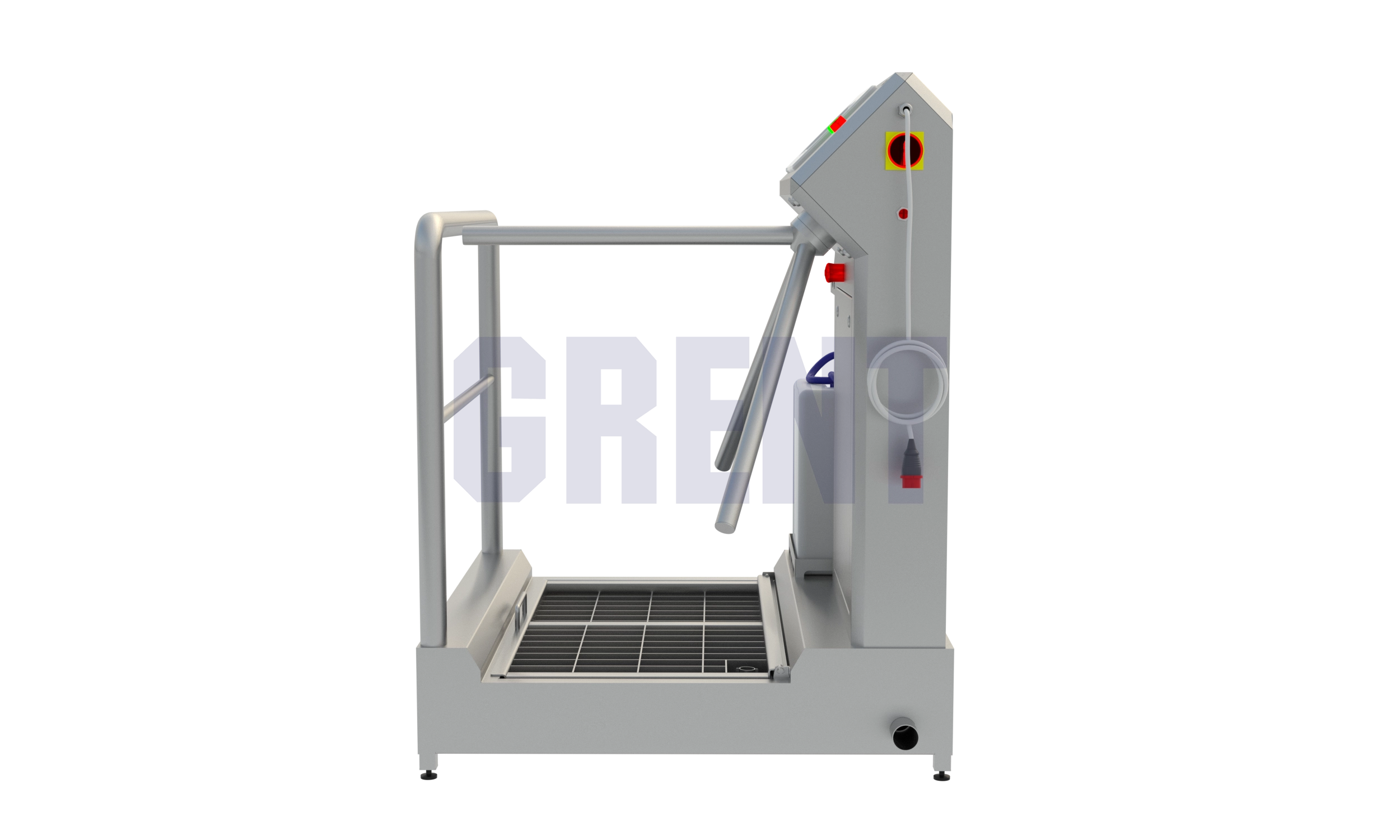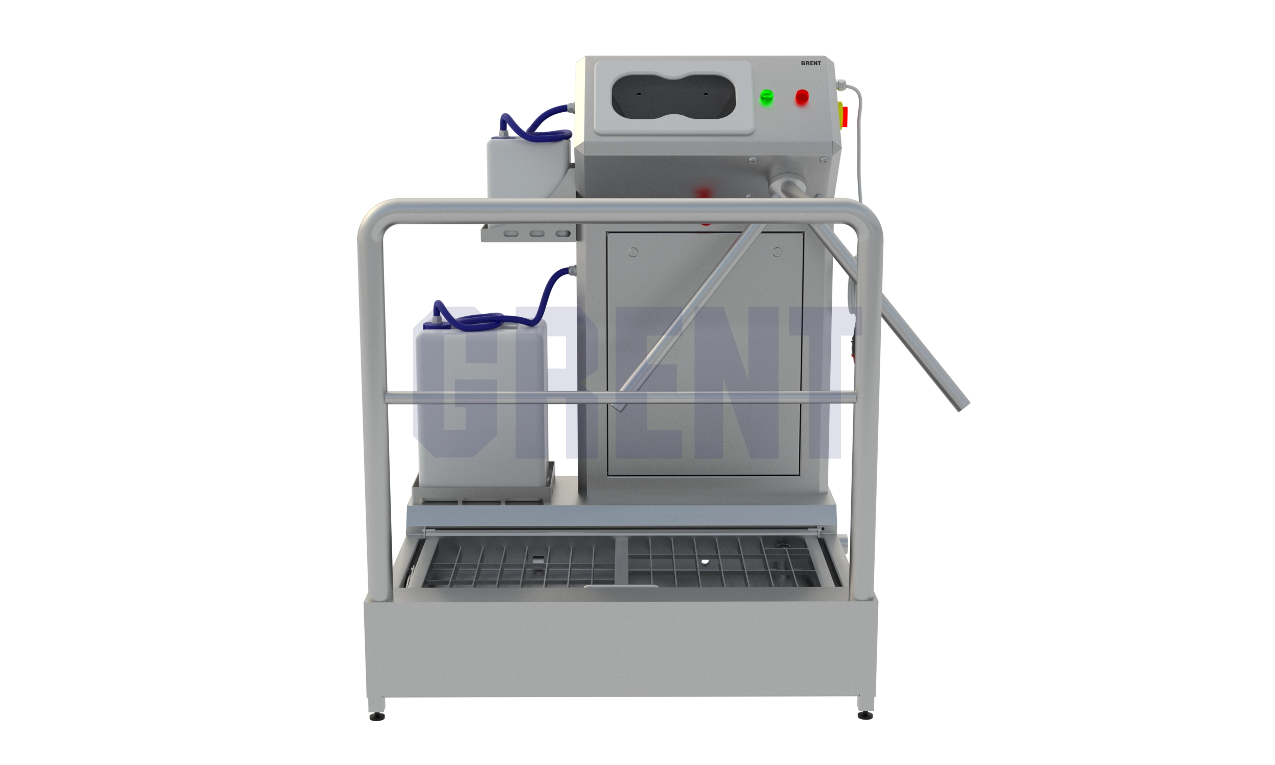 Односторонняя станция гигиены GRENT 021 P предназначена дезинфекции кистей рук и подошвы обуви при входе в чистые помещения на производстве.