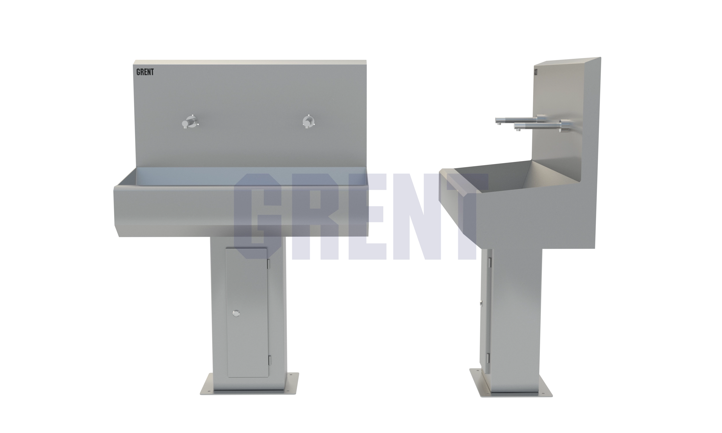 Двух секционный умывальник GRENT-S-02 используется для бесконтактной мойки рук персонала преимущественно на предприятиях общепита и пищевой промышленности. Активация подачи воды осуществляться фотодатчиком при поднесении рук к смесителю.